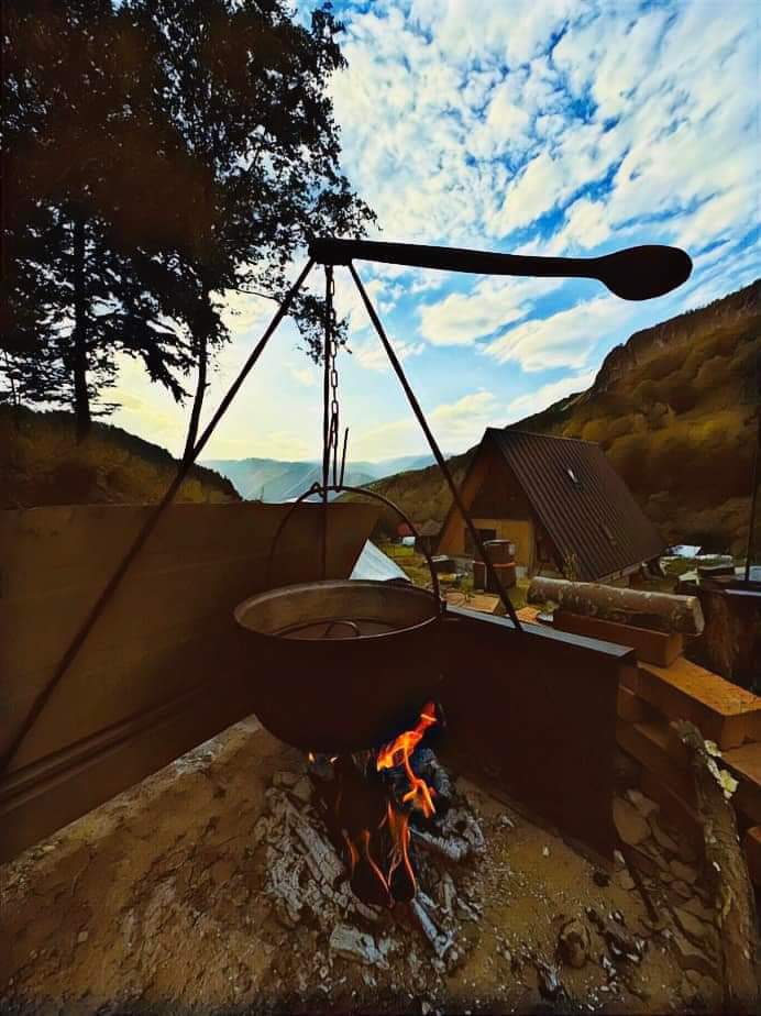 ✅ Loc special amenajat pentru grătar – ceaun, disc, vatră pentru foc de tabără
